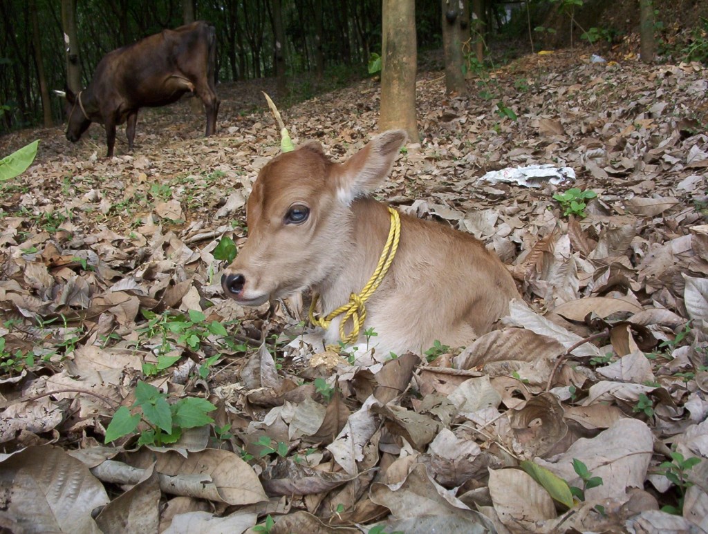 During these years, I learned to milk the cow and helped with farm chores. I would go with Jins’ Mom daily far up the hill in the rubber trees where we would gather grass into a huge bundle to carry on our heads back down. Jins loved the monsoon season for the fishing. Some nights he would go out most of the night with a lantern, fishing basket and curved knife and come back with a big catch in the wee hours of the morning. I went with him once at night to the rice field and holding the lantern, watched while he threw the curved knife at a fish in the water. The fish fell in two pieces!